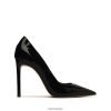 un zapato de salón clásico diseñado en ante con punta puntiaguda y tacón de aguja altísimo. una declaración elegante del día a la noche, temporada tras temporada.