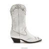 Vaya al oeste con la bota cicera, un diseño llamativo en cuero con punta puntiaguda y tacón apilado.