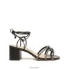 La sandalia Joane presenta un tacón de bloque clásico combinado con cuero de napa de lujo y adornado con destellos brillantes.